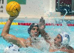 Barcelona, SPAIN (fina.org) - In the battle of two heavy-style teams, it was a surprisingly free-flowing game in the first quarter with Serbia & Montenegro leading 3-2. Each team scored an outside shot from the top with the other three on extra. The game was tighter in the second with one apiece, Predrag Jokic and the USA's Wolf Wigo scoring on extra. The third went the USA's way with Jeff Powers emerging from smothering defence at two metres to send the ball over goalkeeper Nikola Kuljaca's head and Tony Azevedo sending his goal in on counter for 5-4. Serbia took a timeout and 20 seconds later Danilo Ikodinovic converted for 5-5. The fourth didn't disappoint for action but the goals didn't eventuate. Both teams took a timeout on extra but the score didn't change.
