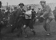 | Race officials assist Dorando Pietri |