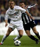 Sasa Ilic (Partizan) and David Beckham (Real) challenge for the ball
